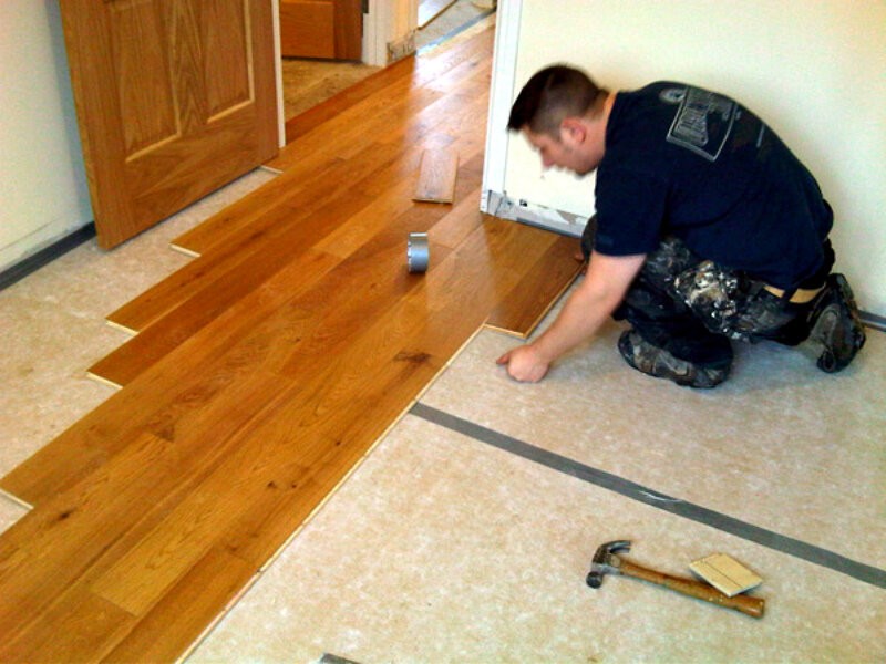 В первую очередь завершаются все черновые работы (выравнивание пола, обустройство откосов, выбор покрытия, определение толщины подложки). Далее приобретаются двери, с учетом того, что уровень пола будет немного поднят после его монтажа (надо заранее измерить насколько). Главное, чтобы осталось достаточное расстояние для того, чтобы уложить напольное покрытие. Лучше закладывать расстояние с небольшим запасом в несколько миллиметров для того, чтобы дверь не задевала пол.