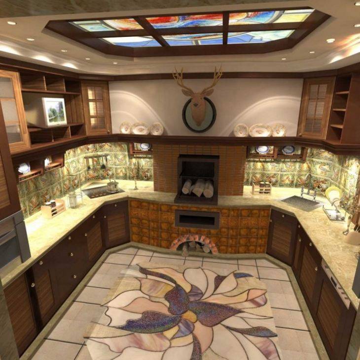 Сюжеты на картинах, выбранных для кухни по фен-шуй, должны отражать теплую и уютную атмосферу, следует украшать стены изображением влюбленных людей, натюрмортами, красивыми животными, птицами, рыбками. Дизайн кухни по фен-шуй приветствует наличие некоторого количества красных деталей. Яркий красный цвет может присутствовать на картинах – в виде цветов на поле, натюрмортов с фруктами. Особое значение придается картинам с нарисованными на них трехпалыми жабами, черепашками или слонами, особенно изображенными на зеленом фоне.