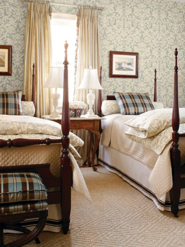 Если вам предстоит ремонт в деревянном доме — подчеркните натуральность материалов, используя приемы из стиля кантри или прованс. Идеально сочетается с деревом и белый скандинавский дизайн, который будет особенно хорошо смотреться в спальне с окнами на север.