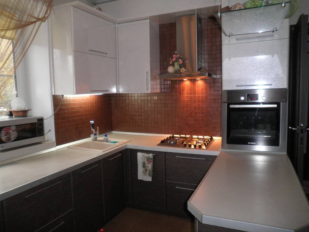 Такой вариант зачастую используют в дизайне малогабаритных квартир или домах с неудобной планировкой помещений, предназначенных для кухни.