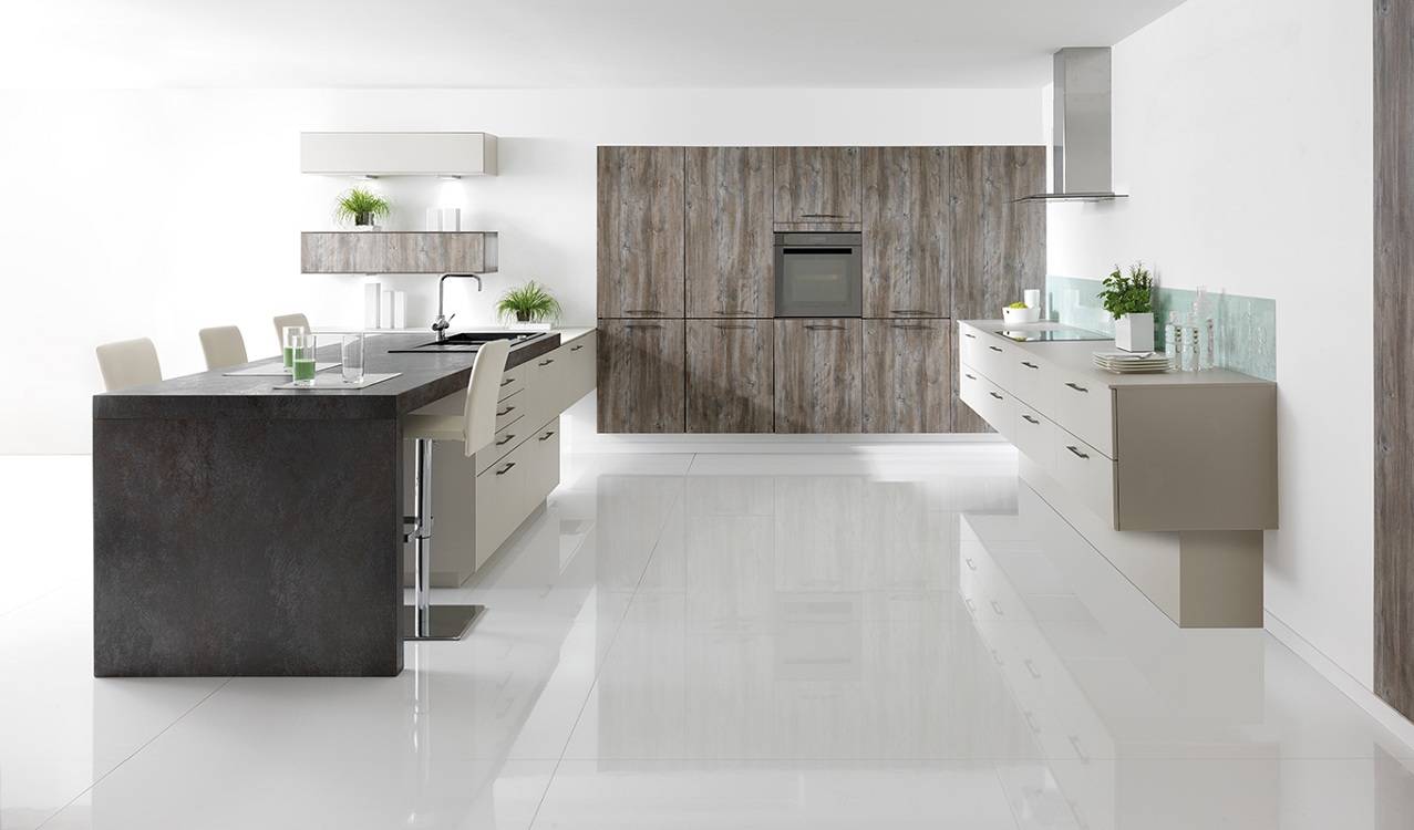 К приятным для восприятия и мягким оттенкам относится бежевый, молочный, светло-серый тон. Подобрать такие материалы для кухонной мебели будет несложно, к тому же, они будут гармонировать с любой техникой.