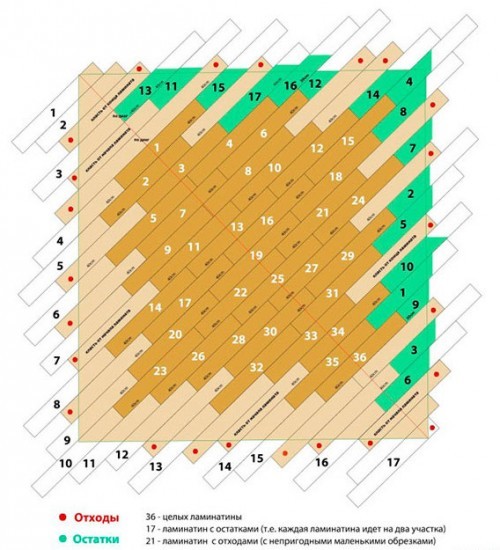 Это был расчет количества ламината по площади во время прямого монтажа, а как на счет диагонального?