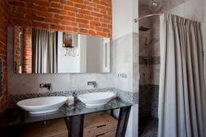 Если вы точно знаете, что стены ванной изготовлены из кирпича, то достаточно лишь освободить их облицовки, а затем отбить штукатурку. Такая стенка будет выглядеть аутентично, гармонично. Такой вариант подходит, если дом имеет историческую ценность.