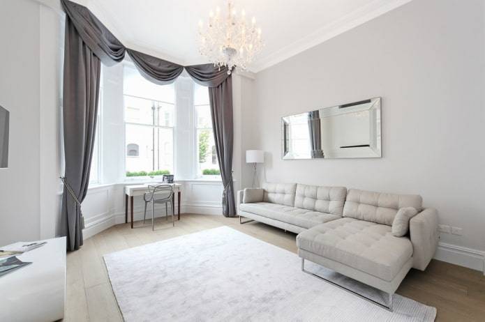 Зачастую рассматривается вариант разграничения двух зон – основной и эркерной, для чего применяются неполные перегородки, ширмы, арки, которые одновременно осуществляют зонирование пространство, но и не препятствуют проникновению солнечного света.