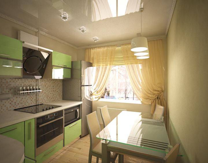 После установки кухонного гарнитура и техники на 9 кв. метрах свободного места остается немного. Поэтому на этапе разработки дизайна кухни следует учесть все детали – форму и размер мебели, количество бытовых приборов, освещение, цвет стен и фасадов, декоративные и текстильные украшения.