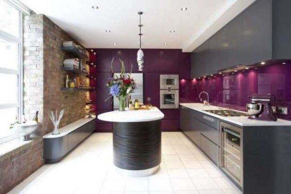 В нем будет очень уместно расположить многоуровневую п-образную кухню с полуостровом или же отдельную кухню–остров стоящий по центру комнаты, как настоящий арт объект.