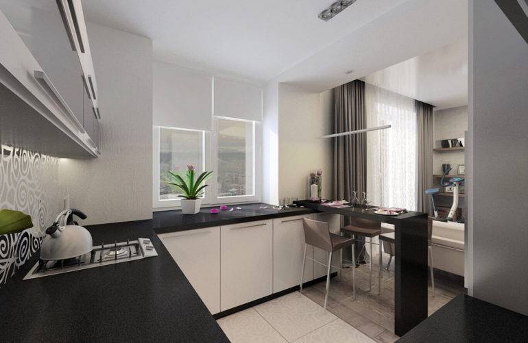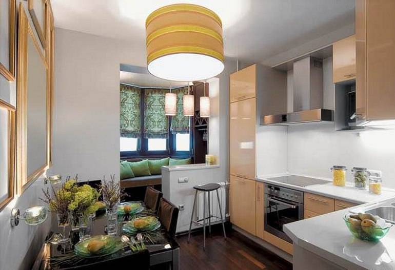 Кухню можно соединить с балконом. Предварительно рекомендуется подумать о выводе системы отопления и утеплить окна. Обязательно перед осуществлением тщательно продумать все детали.