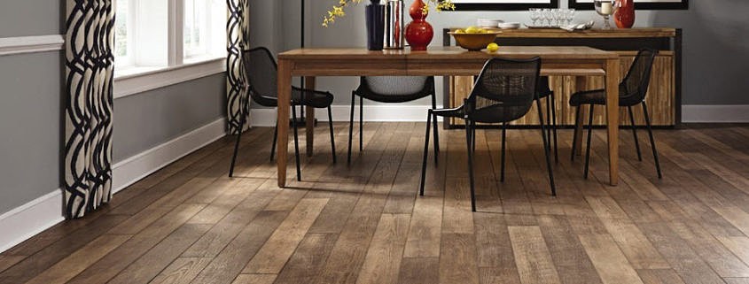 Создает полную гармонию комбинированный ламинат, в котором совместились несколько оттенков различных деревьев. Для этого стиля можно укладывать ламинат с выбеленными цветами.