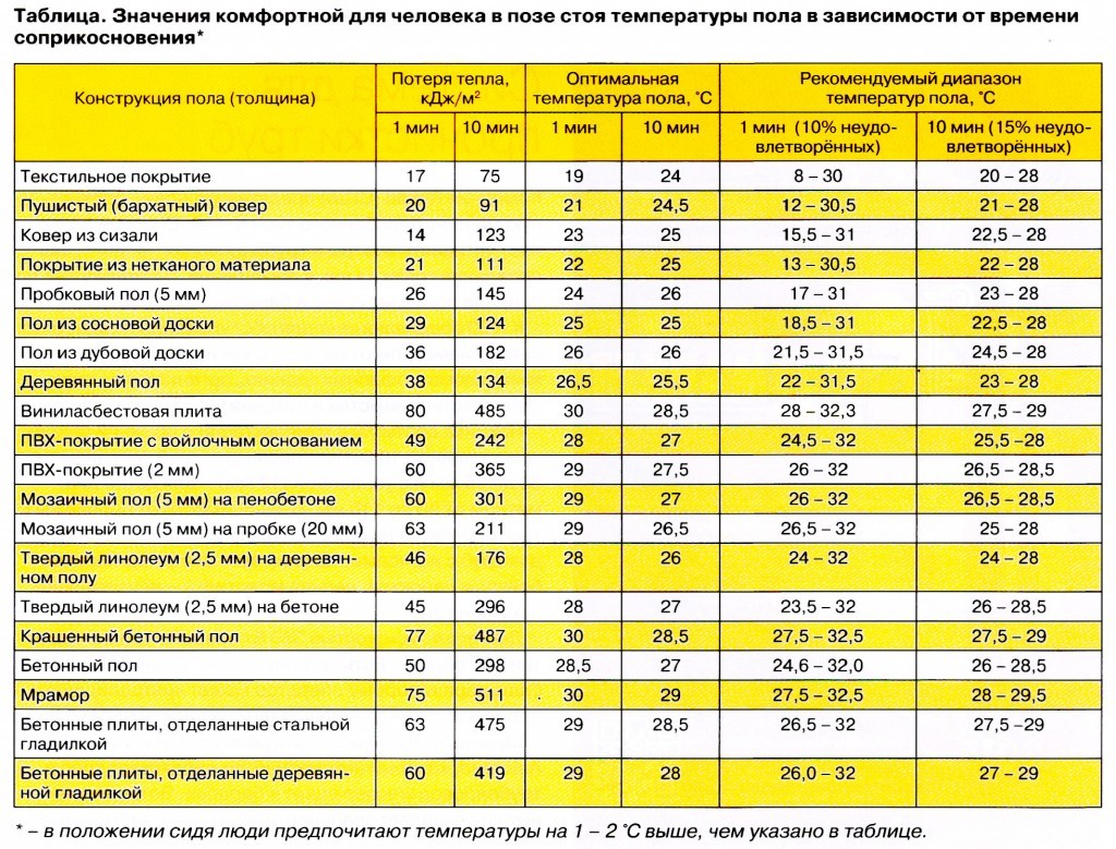 Комфортная температура теплого пола