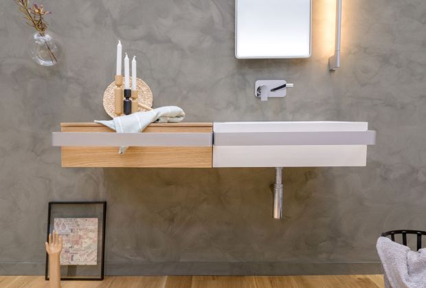 Серый по праву считается одним из самых благородных и сдержанных оттенков. Он деликатен, отлично сочетается как с яркими локальными цветами, так и в монохромной гамме. В современной трактовке его следует чуть наполнять цветом и варьировать его фактуру. Бетон, патина, камень, хромированные поверхности – вместе они дают ощущение бархатистости, но при этом сохраняют устойчивость к влаге и высоким температурам.