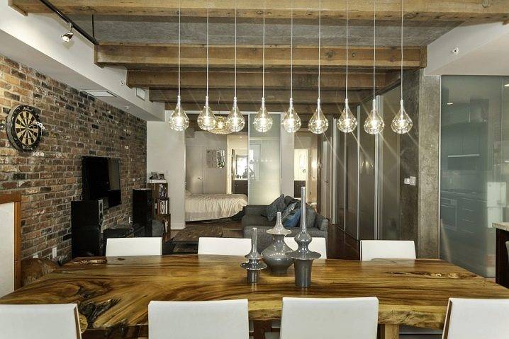 Вы можете самостоятельно оценить возможности зонирования комнаты на основе фото светильников в стиле лофт при их грамотном использовании в интерьере.