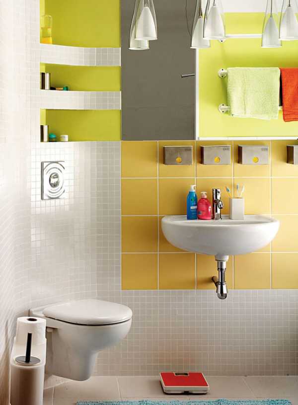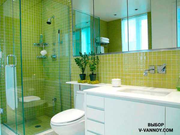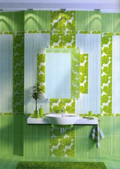 Салатовый цвет настраивает на позитив, но однотонные зеленые стены будут зрительно «съедать» пространство санузла. Дизайнеры рекомендуют сочетать салатовый с белым, чтобы добавить воздуха в интерьер и подчеркнуть свежесть зелени.
