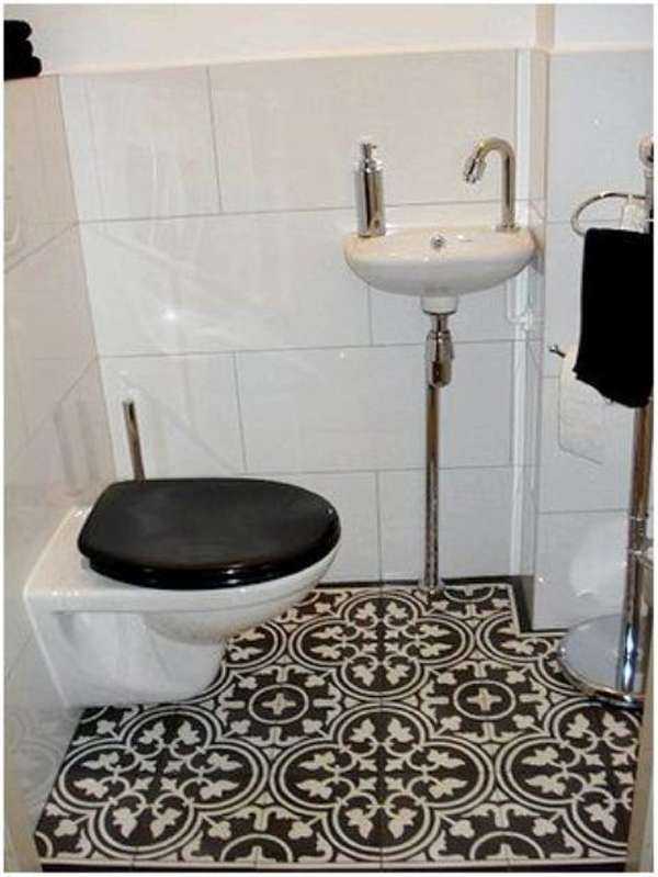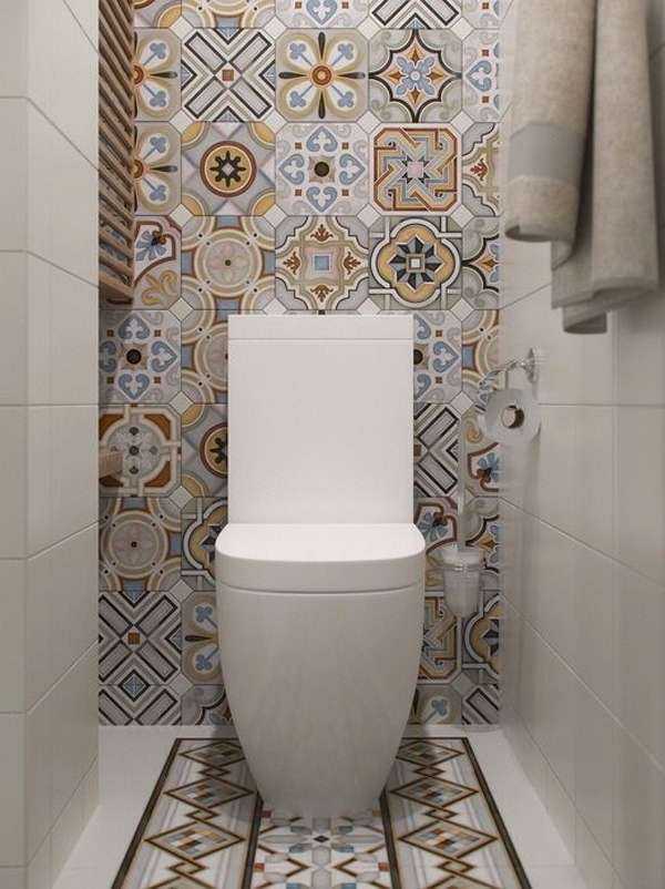Дизайнеры не советуют использовать мелкие узоры для напольного покрытия, ведь это создает не сильно приятное ощущение, будет казаться, что пол немного неровный или чем-то испачкан. Такой узор может не только огорчить хозяина жилья, но и испортить весь дизайн туалета. Большие изображения на стенах будут неуютно себя чувствовать в маленьком туалете – из-за ограниченного пространства нет возможности отойти на должное расстояние для того, чтобы тщательно рассмотреть фото или рисунок, что негативно скажется на общем восприятии.