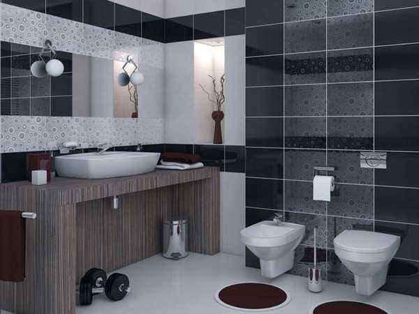 Темная или черная плитка в туалете выглядит дорого и стильно, но используется только в случае достаточно большой площади санузла. Кроме того, такая расцветка требует наличия хорошего освещения.