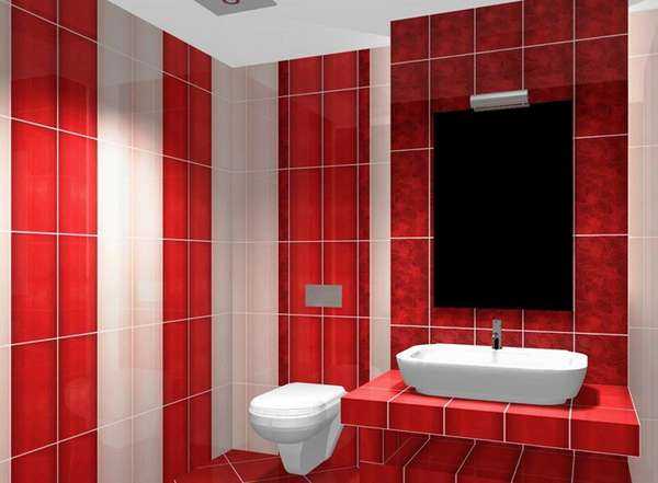Облицовка красной плиткой санузла достаточно смелое дизайнерское решение. Комбинация красного с белым или бежевым облегчает восприятие яркого цвета в интерьере. Сочетание красного и черного в отделке создает экспрессивный, запоминающийся дизайн, который придется по вкусу молодежи.