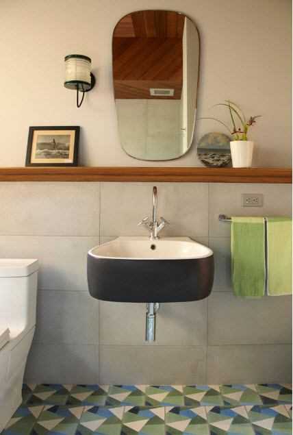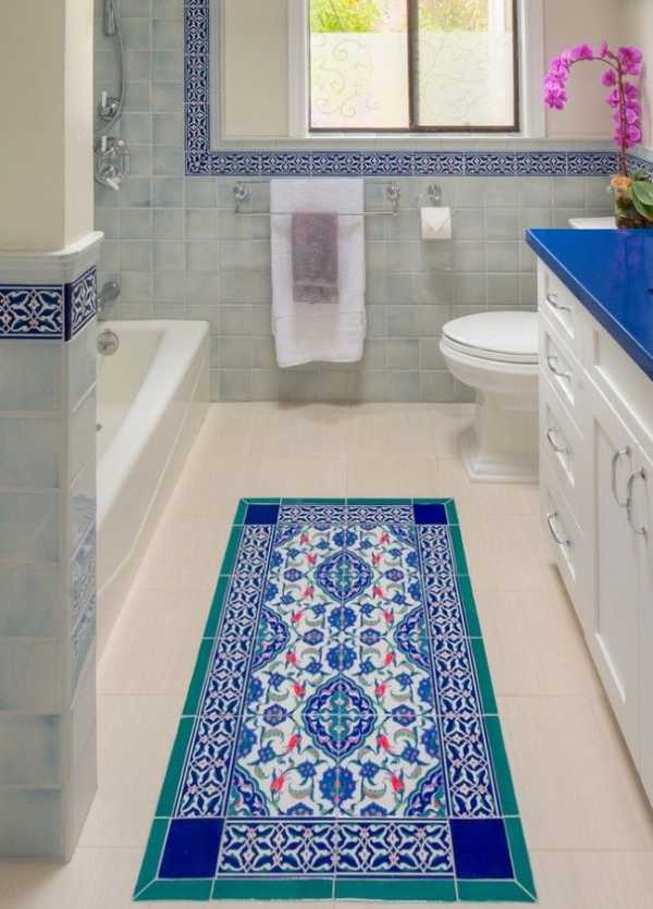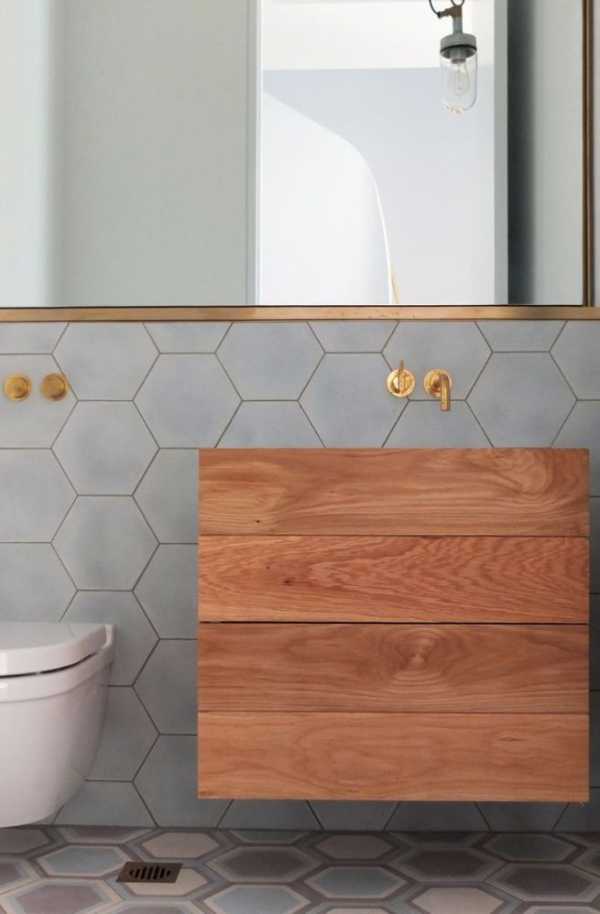 Плитку с геометрическим рисунком лучше использовать для отделки стен, так как на полу такой материал может сильно подчеркнуть неровность поверхности.