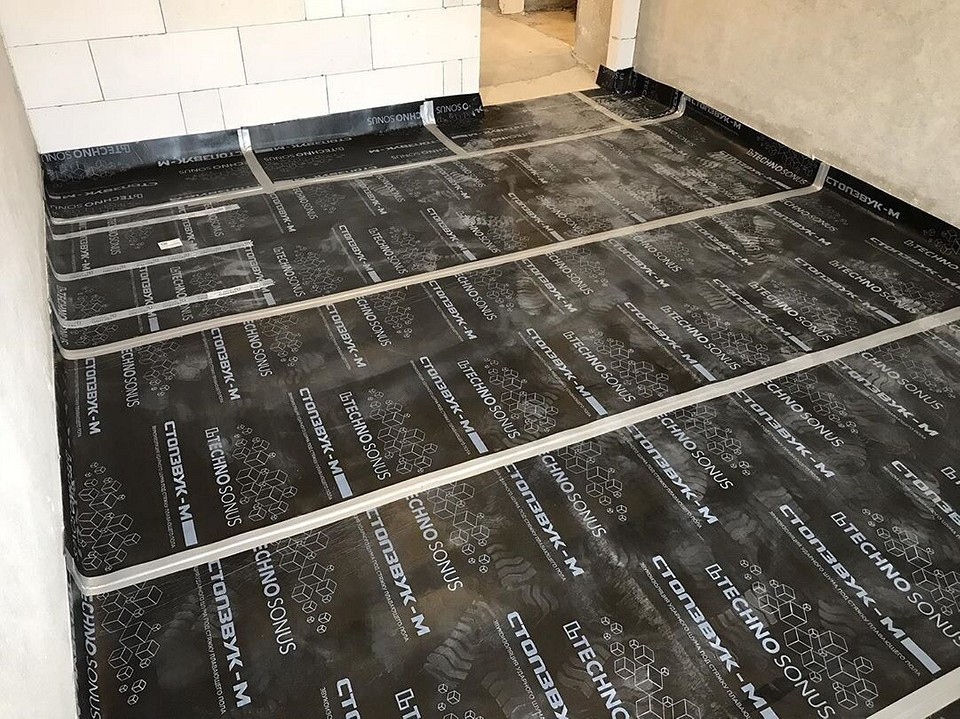 - Укладка гидроизоляционного слоя (при необходимости): Если в помещении повышенная влажность, рекомендуется уложить гидроизоляционный слой поверх шумоизоляционного.