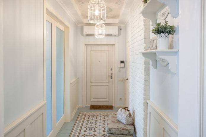 В прованских интерьерах используют кирпич, натуральный камень, древесину, фактурную штукатурку. Эффекты состаренной поверхности создают интерьерной краской. Для имитации кракелюра и патины на мебели, рамках, фурнитуре предназначены специальные составы. Декоративные краски и лаки наносятся на кирпичные, цементные, оштукатуренные, деревянные основания. Чтобы реализовать стиль прованс, не обязательно на всех материалах создавать впечатление обветшалости.