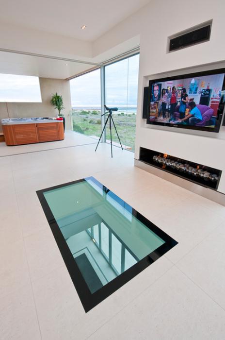 Стеклянный пол может освежить и кардинально изменить комнату. Прозрачная конструкция может визуально увеличить пространство. Это удачное дизайнерское решение.