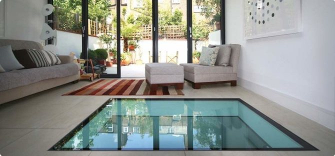 Если вы хотите придать вашему интерьеру оригинальности, то стоит обратить внимание на стеклянные полы. Даже замена небольшой части обычного пола на стекло способна кардинально изменить его внешний облик и облегчить атмосферу в помещении, особенно если в нем много габаритной мебели