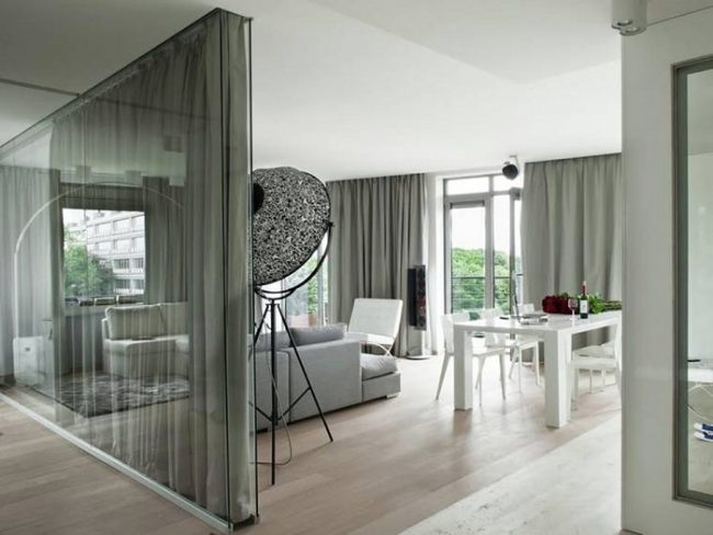 Стеклянные перегородки – удобный вариант для небольших квартир