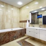 - Гигиеничность. Мраморная плитка для ванной легко чистится обычной тряпкой. На нем не оседает грязь или пыль, а что еще нужно для санузла?