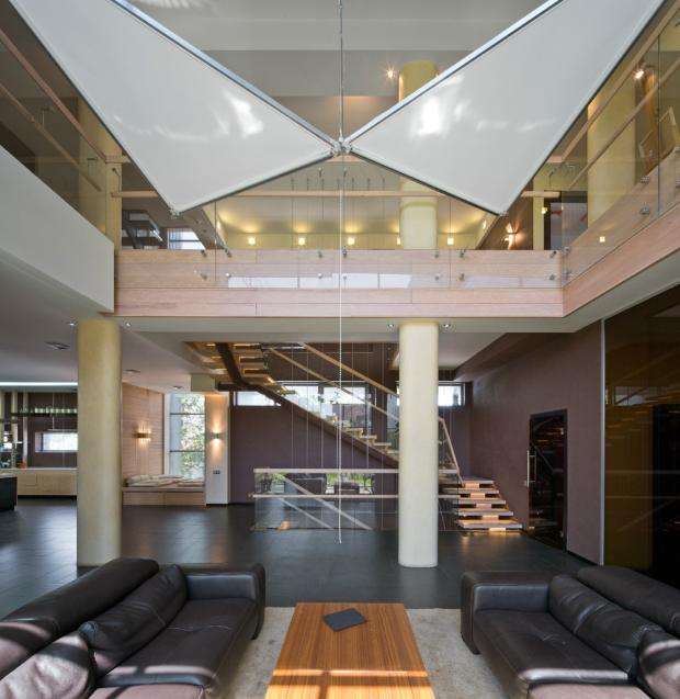 Концепция двойного света предполагает объединение двух-трех этажей. Это приводит к тому, что количество комнат, предназначенных для проживания, уменьшается. Поэтому подобные проекты создаются в основном в домах с достаточным количеством площади. Такие помещения должны иметь высокие потолки и быть просторными, а планировка должна предусматривать дополнительную отопительную систему.